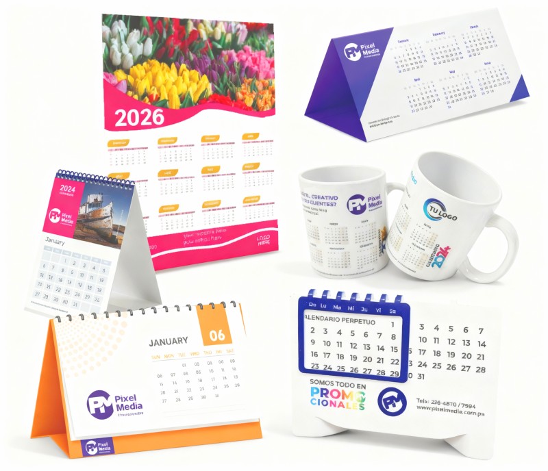 Contamos con una gran variedad de tipos y modelos de calendarios, los cuales pueden ser personalizados de acuerdo a los requerimientos de tu empresa o marca, puedes ajustar el tamaño, color, acabados y mucho más...