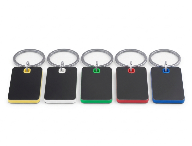Descripción: Elegante llavero de diseño rectangular con acabado en color negro mate y núcleo de PVC vibrante que resalta en los bordes. Su estructura permite una personalización limpia mediante grabado láser o serigrafía, ideal para destacar logotipos corporativos.